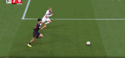 第23分钟,先拔头筹,波库弧顶前兜射破门,勒沃库森1-0